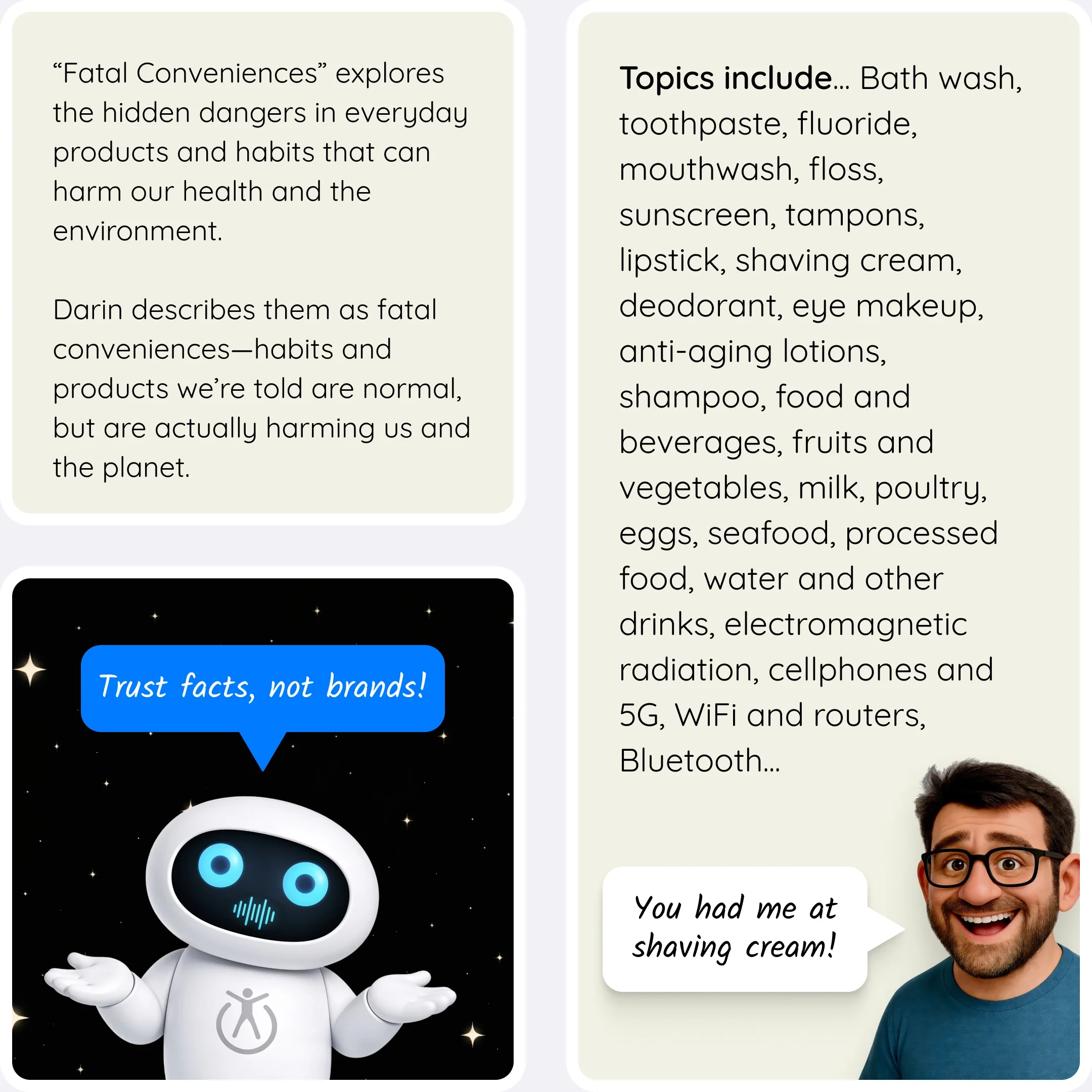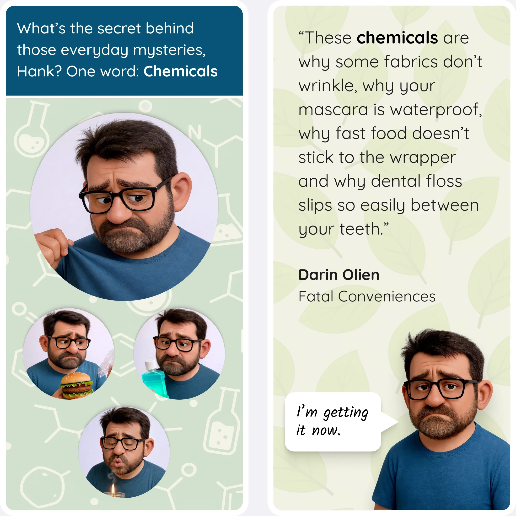 Discover the hidden chemicals lurking in everyday products as Hank questions his routine and finds inspiration in Darin Olien’s Fatal Conveniences.